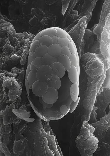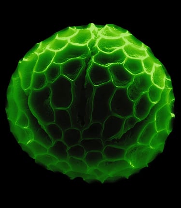 Pollens de consoude officinale et pollen de basilic, observés au microscope électronique à balayage. Série Vaisseaux Poussière.